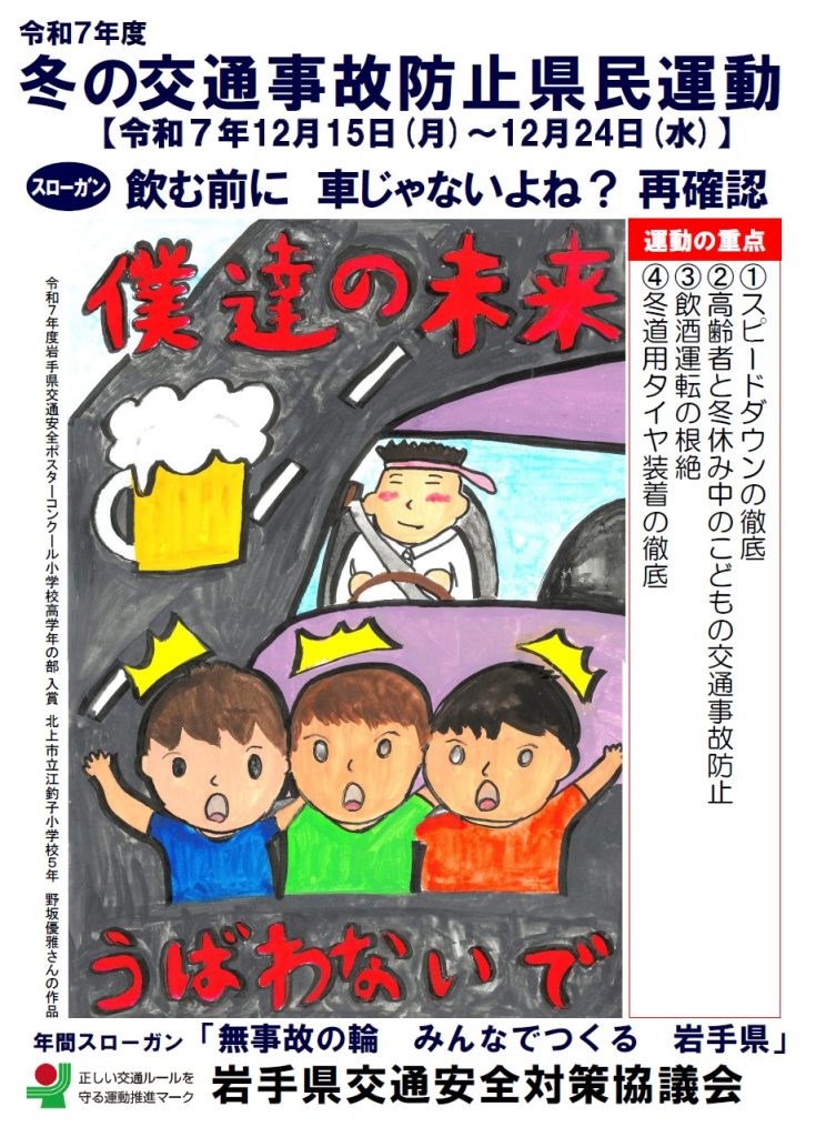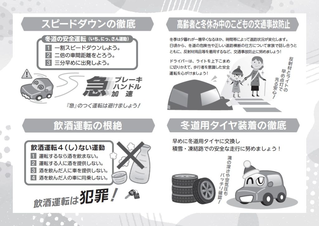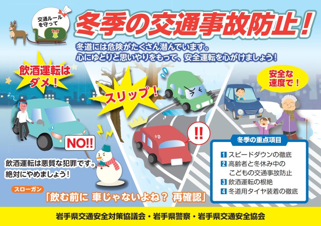 安全対策通信を発行しました(冬の交通事故防止県民運動) 2025年12月2日 最終更新日時 : 2025年12月2日 thd-site-user テクノスグループでは従業員やそのご家族の交通安全意識を高め、事故や違反のない安心した生活を過ごしていただくことを目的に、安全対策通信を定期的に発行し交通事故防止の啓蒙活動を行っております。 安全対策通信 冬の交通事故防止県民運動について(PDF) 岩手県 ポスター 岩手県 チラシ(表) 岩手県 チラシ(裏)