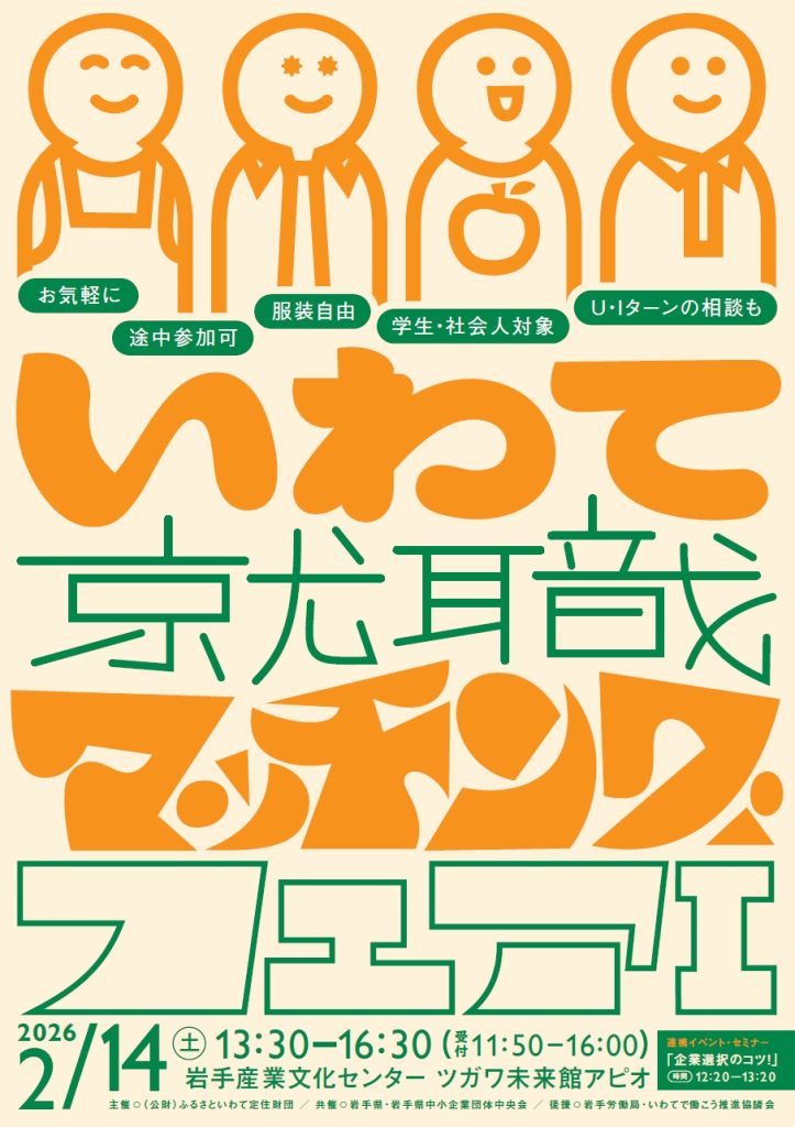 2月14日(土)13:30から岩手産業文化センター ツガワ未来館アピオで開催される「いわて就職マッチングフェアⅠ」にテクノス・テクノスワークが出展します。