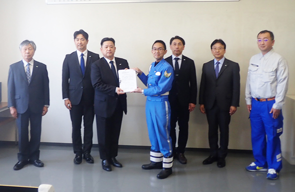 当社グループの社員の中から交通違反や交通事故により不幸な家族が出ないように、また高速道路の維持修繕業務に関わるプロとしての自覚と意識を高める事を目的として岩手県警本部高速道路交通警備隊に毎年交通安全誓約書を提出しております。 【テクノス・秋田道路・ハロックス・テクノスワーク】